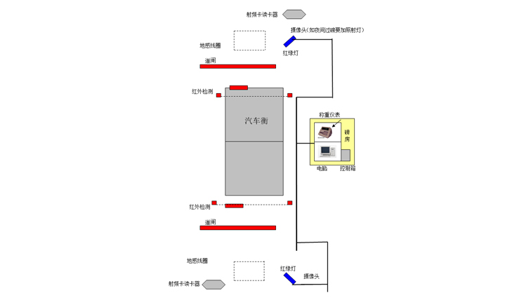 汽車衡無人值守系統(tǒng)可自動完成車輛的過磅。車輛從秤臺的入口上磅,從出口下磅,秤臺入門處用紅綠燈控制車輛通過,采用紅外定位。系統(tǒng)具有2套讀卡器裝置,安裝地磅入口處和出口出,當電子卡片(遠距射頻卡,讀卡距離0-9米)接近讀卡器時,讀卡器能夠檢測到車輛的到來,通過電腦控制自動完成稱重、打印磅單、拍照的稱重過程,系統(tǒng)數(shù)據(jù)采用SQLSERVER2000小中型數(shù)據(jù)庫。稱重電腦可以相互聯(lián)網(wǎng)稱重,在其中一臺稱的皮重的記錄可以到其它電腦上調(diào)出來再稱重。